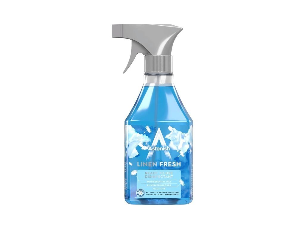 Astonish Dezinfekční sprej Linen Fresh 550 ml rychle a účinně ničí bakterie, viry a mikroorganismy na různých površích. Svěží vůně čistého prádla zanechá vaši domácnost hygienicky čistou a příjemně provoněnou. Ideální pro každodenní dezinfekci domácnosti i kanceláře.