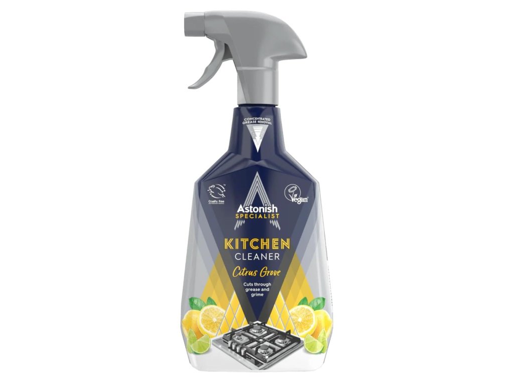Astonish Specializovaný sprej na čištění kuchyní s vůní citrusů 750ml rychle odstraňuje mastnotu, zaschlé zbytky jídla a běžné nečistoty. Vaše kuchyň bude zářivě čistá a provoněná svěží citrusovou vůní. Biodegradabilní složení zaručuje bezpečnost pro pracovní plochy a šetrnost k životnímu prostředí. Ideální pomocník pro rychlý a efektivní úklid.