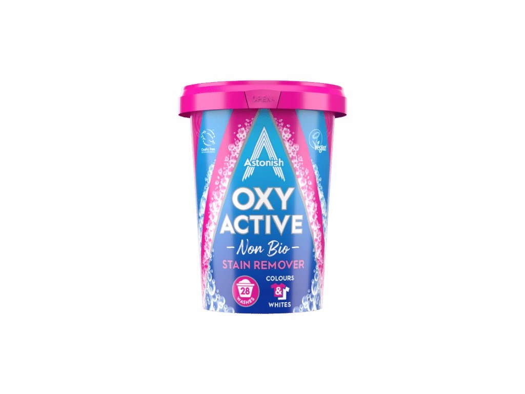 Astonish Oxy Active Non Bio odstraňovač škvŕn na prádlo 625 g je spoľahlivý pomocník pre žiarivo čisté prádlo bez škvŕn. Vďaka aktívnej sile kyslíka účinne odstraňuje aj odolné nečistoty ako káva, víno, ovocie či mastnota, a pritom zostáva šetrný k pokožke aj vláknam.