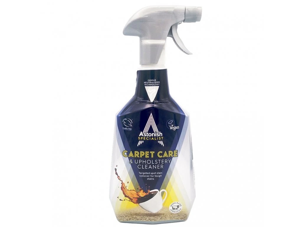 Astonish Carpet Care 750 ml – špecializovaný čistiaci sprej na koberce a čalúnenie je ideálnym riešením pre dôkladné odstránenie škvŕn a nečistôt. Vďaka účinnému zloženiu ľahko preniká do vlákien kobercov aj textílií a zanecháva ich čisté, svieže a bez nepríjemných pachov.