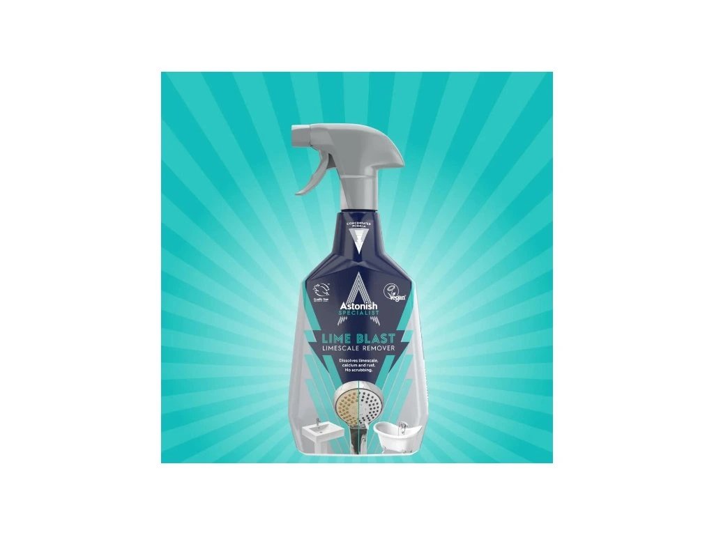 Astonish Lime Blast 750ml je účinný sprej na odstránenie vodného kameňa, ktorý rýchlo a ľahko čistí povrchy v kúpeľni aj kuchyni. Rozpúšťa odolné usadeniny, zanecháva lesk a sviežu vôňu.
