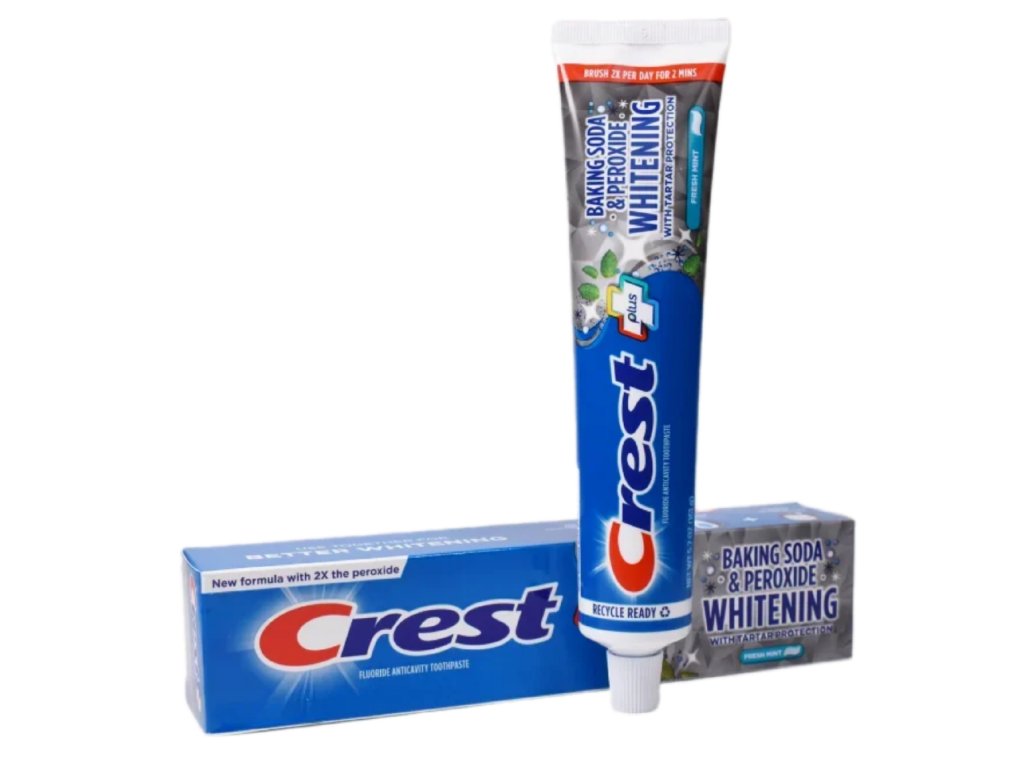 Zubná pasta Crest Whitening vám pomôže získať krásny úsmev. Obsahuje jedlú sódu a peroxid na odstránenie povrchového zafarbenia. Odstraňuje zubný povlak, bojuje proti vzniku zubného kazu a kameňa a zanechá zuby hladké.