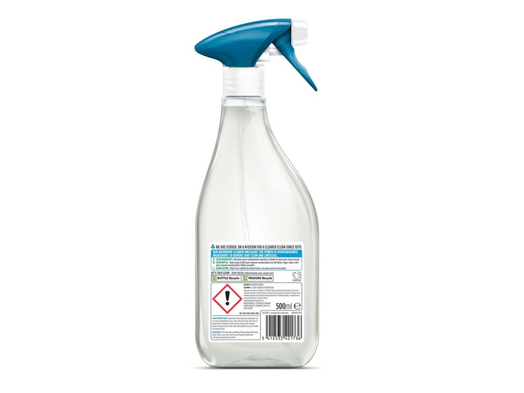 ECOVER čistič kúpeľne Mint and Cucumber 500 ml je ekologický čistiaci prostriedok do kúpeľne, ktorý účinne odstraňuje vodný kameň, škvrny od mydla aj bežné nečistoty bez zbytočnej chémie. Ak hľadáte prírodný čistič kúpeľne na rastlinnej báze, ktorý zanechá povrchy dokonale čisté a sviežo prevoňané, tento sprej je ideálnou voľbou. Vďaka účinnému zloženiu si poradí s usadeninami na sprchových kútoch, vaniach, batériách aj obkladoch a zároveň je šetrný k domácnosti aj životnému prostrediu. Praktický rozprašovač umožňuje jednoduchú aplikáciu a rýchle upratovanie bez námahy. Víťaz testu ÖKO-TEST potvrdzuje vysokú kvalitu a účinnosť. Skvelá voľba pre každého, kto chce spojiť ekologické upratovanie kúpeľne s maximálnym čistiacim výkonom.