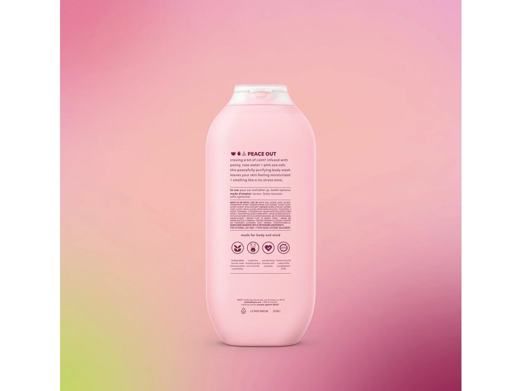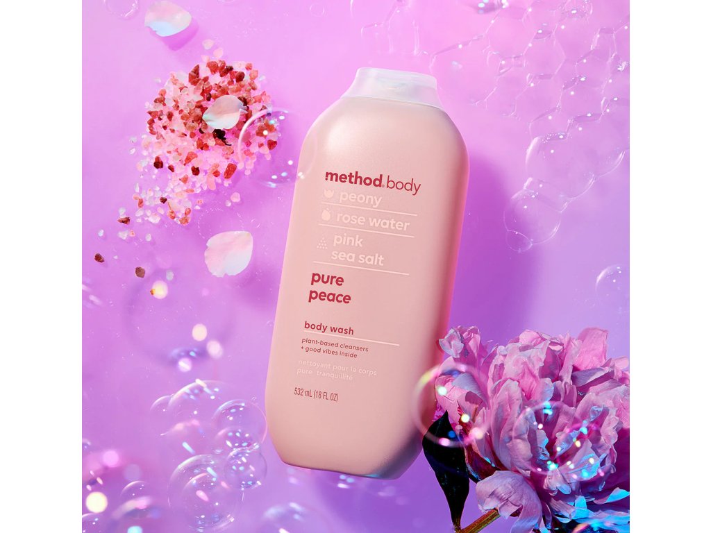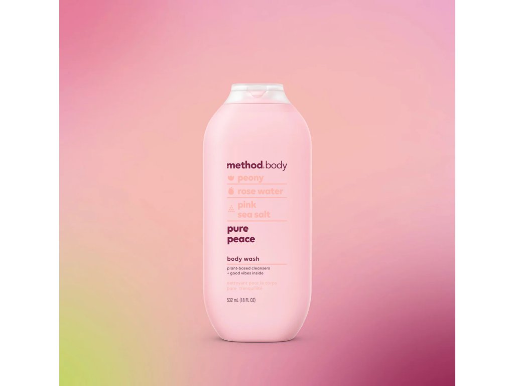 method Sprchový gél Pure Peace 532 ml prináša pokoj a pohodu priamo do vašej sprchy. Vďaka jemnej kombinácii ružovej pivónie, ružovej vody a ružovej morskej soli zanecháva pokožku čistú, jemnú a dobre hydratovanú. Tento čistiaci sprchový gél je ideálny na každodennú starostlivosť o telo, poskytuje osviežujúci a zároveň relaxačný zážitok a navodzuje pocit pokoja a harmónie. Vďaka hebkej pene a jemnej vôni sa sprchovanie mení na malú meditáciu, ktorá upokojuje myseľ a uvoľňuje stres. Zloženie obsahuje starostlivo vybrané prírodné zložky, ktoré sú šetrné k pokožke a zároveň účinne odstraňujú nečistoty a prebytočný kožný maz.