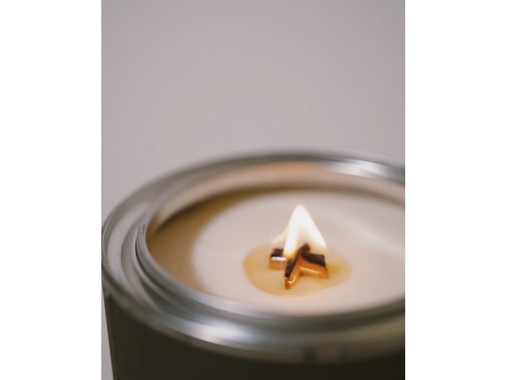 Plameň sviečky vytvára jedinečný efekt – svetlo sa odráža od kovových stien a priestor prežiari inak, než klasické sklo. Knot z organickej bavlny zaisťuje čisté a rovnomerné horenie po dobu až 60 hodín. Po dohorení je možné plechovku ľahko znova využiť napríklad ako štýlový kvetináč či dekoráciu do domácnosti.