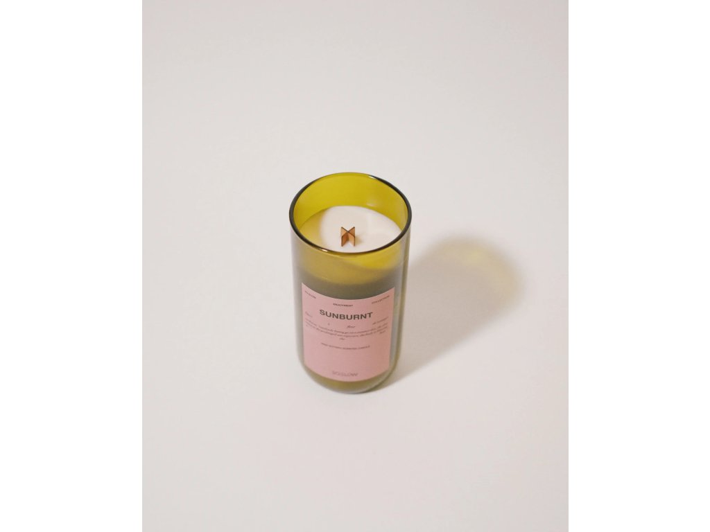 SO.SLOW Sunburnt je ručne vyrábaná sójová sviečka s vôňou figy a pomarančového kvetu. Horí až 60 hodín a vďaka designu z recyklovaných vínových fliaš je ideálnym elegantným darčekom.