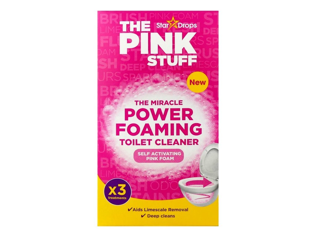 The Miracle Foaming Toilet Cleaner - Pink Stuff penivý čistiaci prášok na toaletu. Tento účinný čistič toalet poskytuje rýchly a pohodlný spôsob hĺbkového čistenia toaletnej misy. Táto samoaktivačná ružová pena sa zameriava pod povrch, hĺbkovo čistí, odstraňuje odolné škvrny, pachy a vodný kameň, pričom zanecháva našu charakteristickú sviežu ovocnú vôňu.